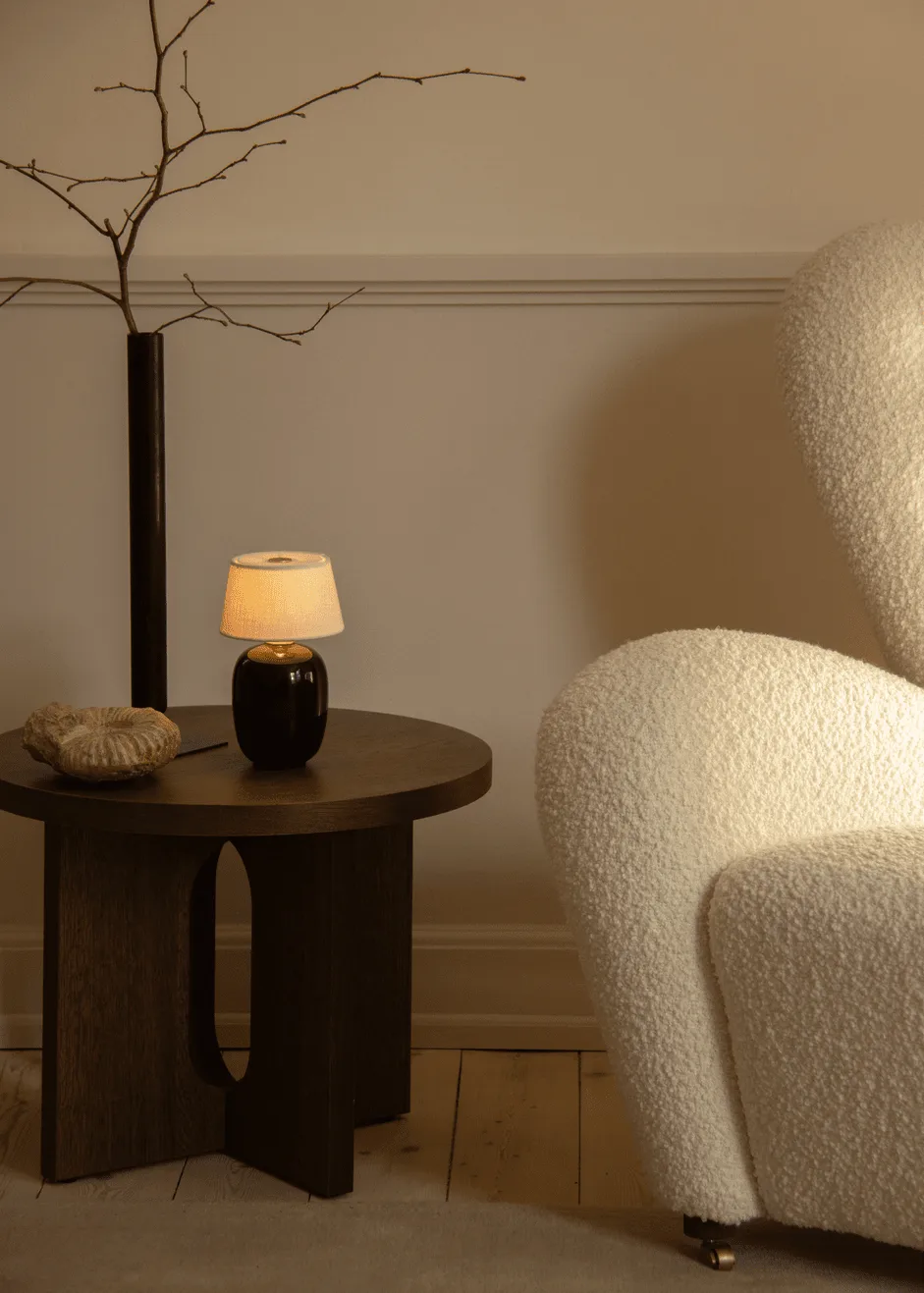 덴마크 브랜드 Audo Copenhagen의 Torso 휴대용 테이블 램프는 Kroeyer-Saetter-Lassen이 디자인했으며, 더 큰 Torso 테이블 램프의 작고 휴대하기 편리한 버전입니다. 램프 받침대는 무광 도자기로 만들어졌으며 부드러운 둥근 모양으로, 얇은 리넨으로 만든 수제 램프 갓의 직선과 멋진 대비를 이룹니다. 이러한 단순하고 아름다운 소재는 램프 받침대와 램프 갓 상단의 황동 디테일로 보완됩니다. 상단의 황동 실린더는 터치 디머 역할을 하여 간단히 터치하기만 하면 3단계로 램프를 어둡게 할 수 있습니다. 휴대용 테이블 램프는 놓기가 매우 쉽고 크기와 무선 디자인 덕분에 다음 방으로 쉽게 옮길 수 있습니다.