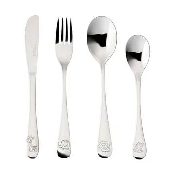 에터넘 아동 커트러리는 Eternum의 제품으로, 18/0 스테인리스의 하이글로스 마감 위에 사랑스러운 동물 모티프를 더한 키즈 커트러리 세트입니다. 나이프 17.6 cm·포크 17 cm·수저 16 cm·티스푼 14 cm 구성으로 작은 손에도 가볍고 안정적인 그립을 제공해 스스로 먹는 즐거움을 북돋아 줍니다. 기능·안전·즐거움을 고루 갖춘 내구성 높은 선물 아이템으로, 일상과 주말 식탁을 한층 따뜻하게 완성합니다.