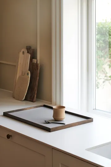 Gejst의 대형 프레임 트레이 35.5x50.6cm는 방수 페인트 처리된 MDF로 만든 직사각형 보관 트레이입니다. 일요일 아침에 갓 구운 빵을 제공할 때 아침 식사 트레이로 사용하거나 정물화를 액자에 넣는 장식 트레이로 프레임을 사용하세요.