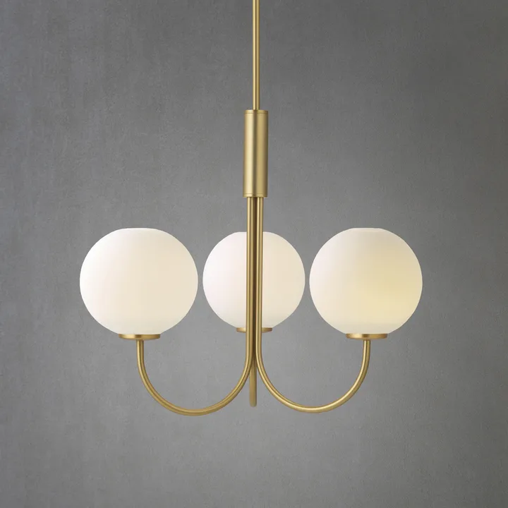 Herstal의 볼온 샹들리에는 3개에 부드럽게 뻗은 아치형 암 부분, 그리고 방 안에 부드러운 빛을 낼 수 있는 오팔 유리로 구성되어 있습니다. 식탁 위나, 복도에, 혹은 침실에 우아한 분위기를 줄 수 있는 조명입니다. 천장등 후크(천장 고정용 부속품) 불포함. 별도 구매 바랍니다.