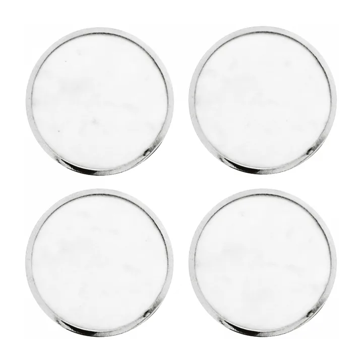힐케 콜렉션 코스터 4개 세트, White marble-nickle plated brass