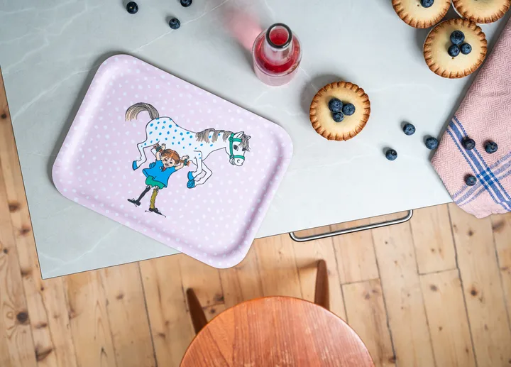 Muurla의 삐삐 트레이 20x27 cm는 내구성 있는 자작나무 합판으로 만들어졌습니다. 핀란드에서 수작업으로 제작된 이 트레이는 Muurla의 삐삐 롱스타킹 컬렉션에서 가장 사랑받는 삽화인 삐삐와 말을 Kata Nowak-Kiminki가 디자인한 것으로 장식되어 있습니다.