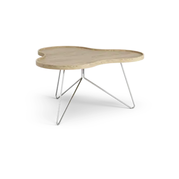스웨덴 Swedese의 Flower mono 테이블은 꽃 모양의 원목 상판과 스틸 베이스가 있는 낮은 테이블로, 커피 테이블로 훌륭하게 사용할 수 있습니다.