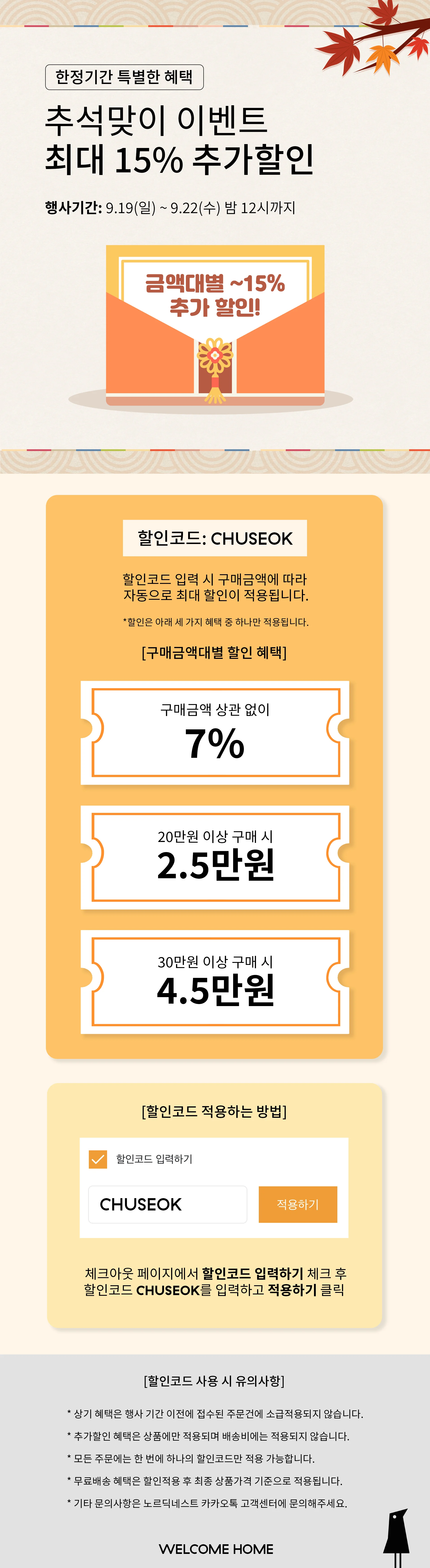 추석맞이 최대 15% 추가할인